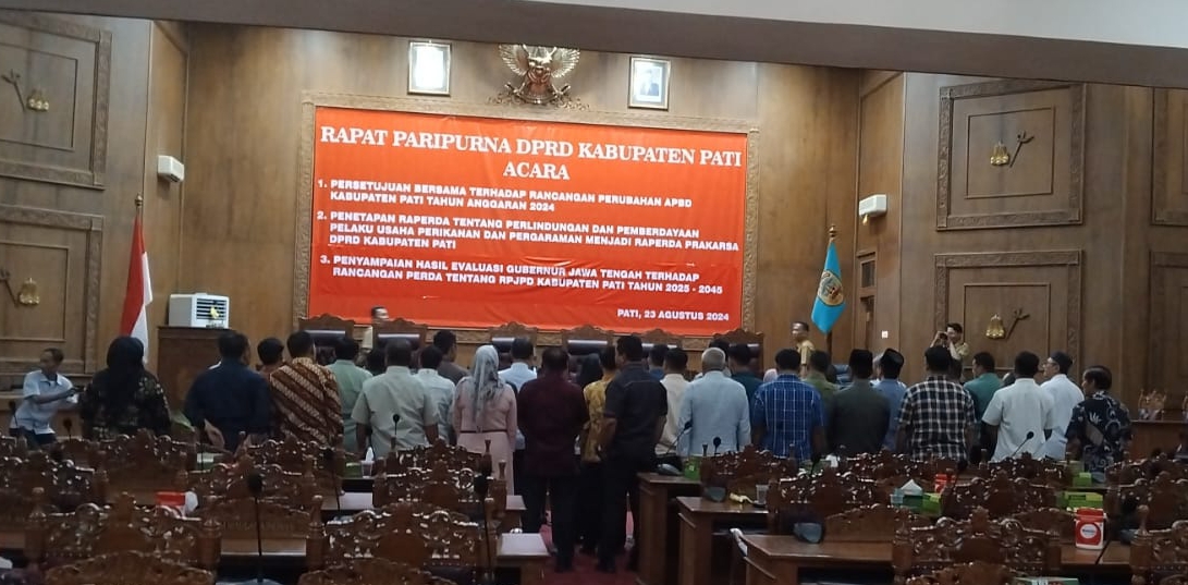 KanalSatu.id – PATI, – Sekretariat DPRD Kabupaten Pati menggelar gladi bersih rapat paripurna pengambilan sumpah dan janji pelantikan anggota DPRD Kabupaten Pati masa jabatan tahun 2024 – 2029 di ruang Paripurna DPRD Pati, Senin siang, (26/08/2024).