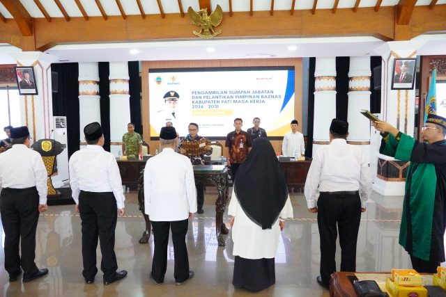 PATI — KanalSatu.id, Plt. Bupati Pati, Risma Ardhi Chandra, berharap jajaran pimpinan Badan Amil Zakat Nasional (BAZNAS) Kabupaten Pati periode 2026–2031 yang baru dilantik di Pendopo Kabupaten, Jumat (10/4), dapat bersinergi dengan Pemkab, utamanya dalam penanganan banjir, bantuan Rumah Tidak Layak Huni (RTLH), serta penyaluran beasiswa kepada masyarakat.
